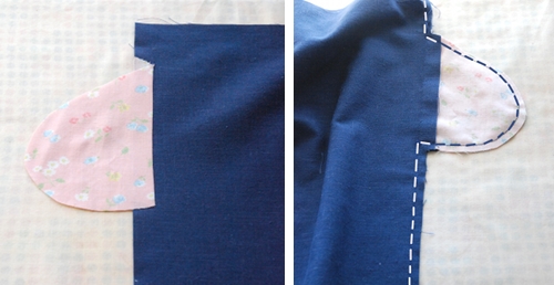 Place your pocket pieces right sides together on your skirt front and back.  Sew down the straight edge of the pocket.