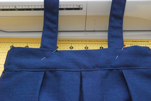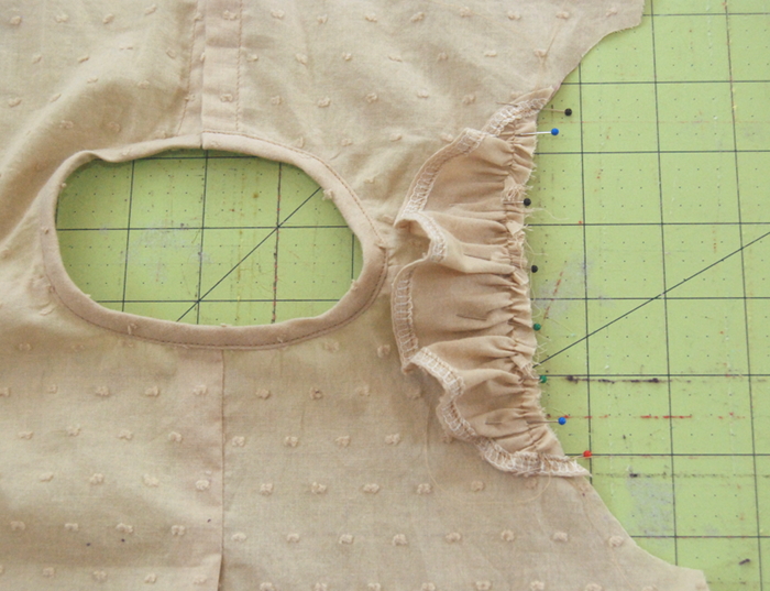 Pin the ties to the bodice sides and shoulders, right sides together.