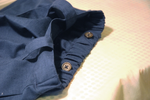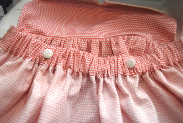 Almost done!  Hand sew buttons into the back of the skirt catching only the inside of the waist band (not the elastic or the outside of the skirt).