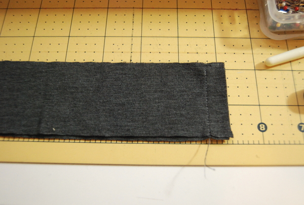 Cut the extra fabric off, pin and sew along the line to create a loop.
