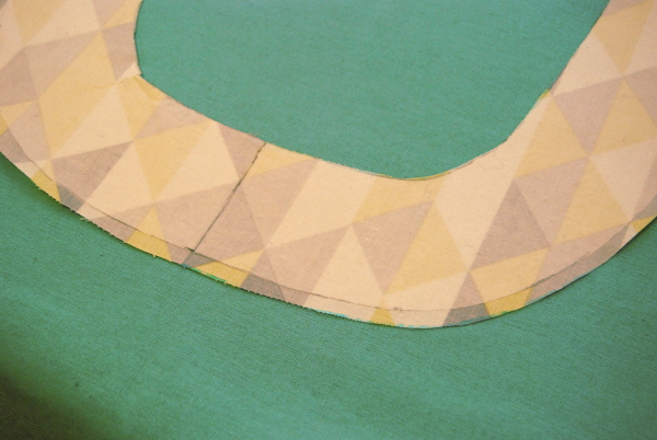 You’ll also need to cut a piece of fusible web from the neckline pattern piece, but without the added 1/4 inch along the bottom curve.
