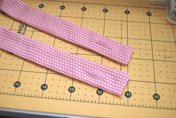 For the back ties, take the length you just calculated (9 inches, in my case) and add 2 inches.  So your neck ties will be 9 inches long and your back ties will be 11 inches long.