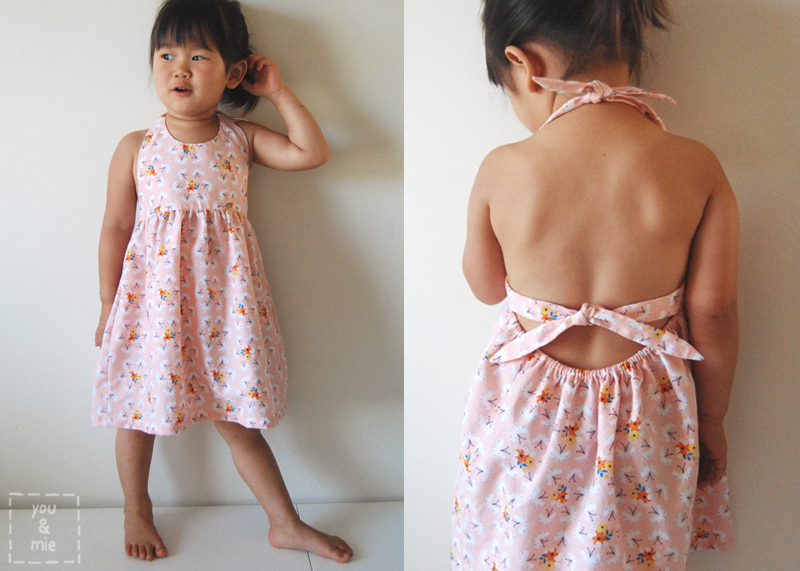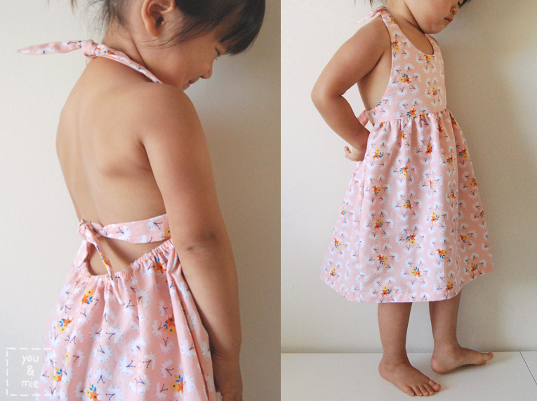 The dress is a halter-style dress with two ties in the back, a skirt that is gathered in the front and elastic in the back and, of course, pockets.  It’s super summery and perfect for the beach or picnics or parties, or whatever else you’ll be up to this season!  Just be sure to slather on the sunscreen because this baby shows a lot of back (but not that kind of back).