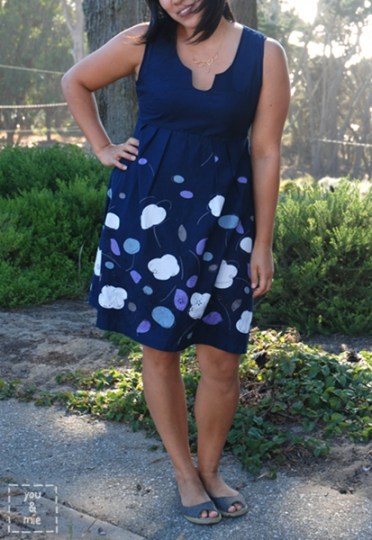The dress is super cute, simple yet stylish, and very flattering. It has a fitted bodice with a pleated a-line skirt, pockets and a unique cut-out scoop neckline. Shirring in the back assures a perfect and comfortable fit and makes it so you do not need a zipper or button closure. Genius!!! When I saw how professional Rae’s versions looked and considering how intimidating sewing women’s clothing is to me, I thought this pattern would be complicated. But it was surprisingly very simple to sew up!! Rae has labeled this pattern for intermediate sewers, but I think ambitious beginners should certainly give this a try. The trickiest part for me was learning the shirring technique. The rest was a breeze!